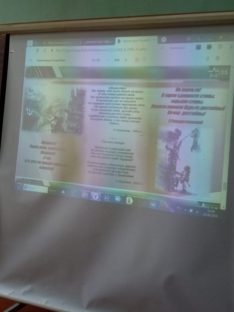 Целью этого мероприятия было ознакомление обучающихся с примерами героизма и мужества различных поколений защитников Отечества, оказание поддержки участникам специальной военной операции, а также мобилизованным военнослужащим, проходящим подготовку и боевое слаживание.